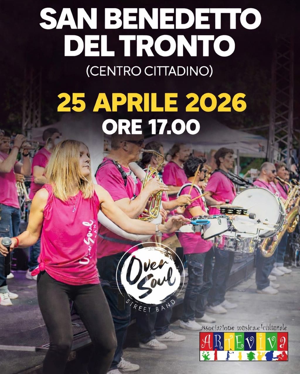 Il centro cittadino di San Benedetto del Tronto si trasforma in un palcoscenico a cielo aperto con l’energia travolgente della Oversoul Street Band. La formazione perugina, composta da quattordici musicisti professionisti e una voce solista, porterà una ventata di ritmo in occasione delle celebrazioni del 25 aprile.