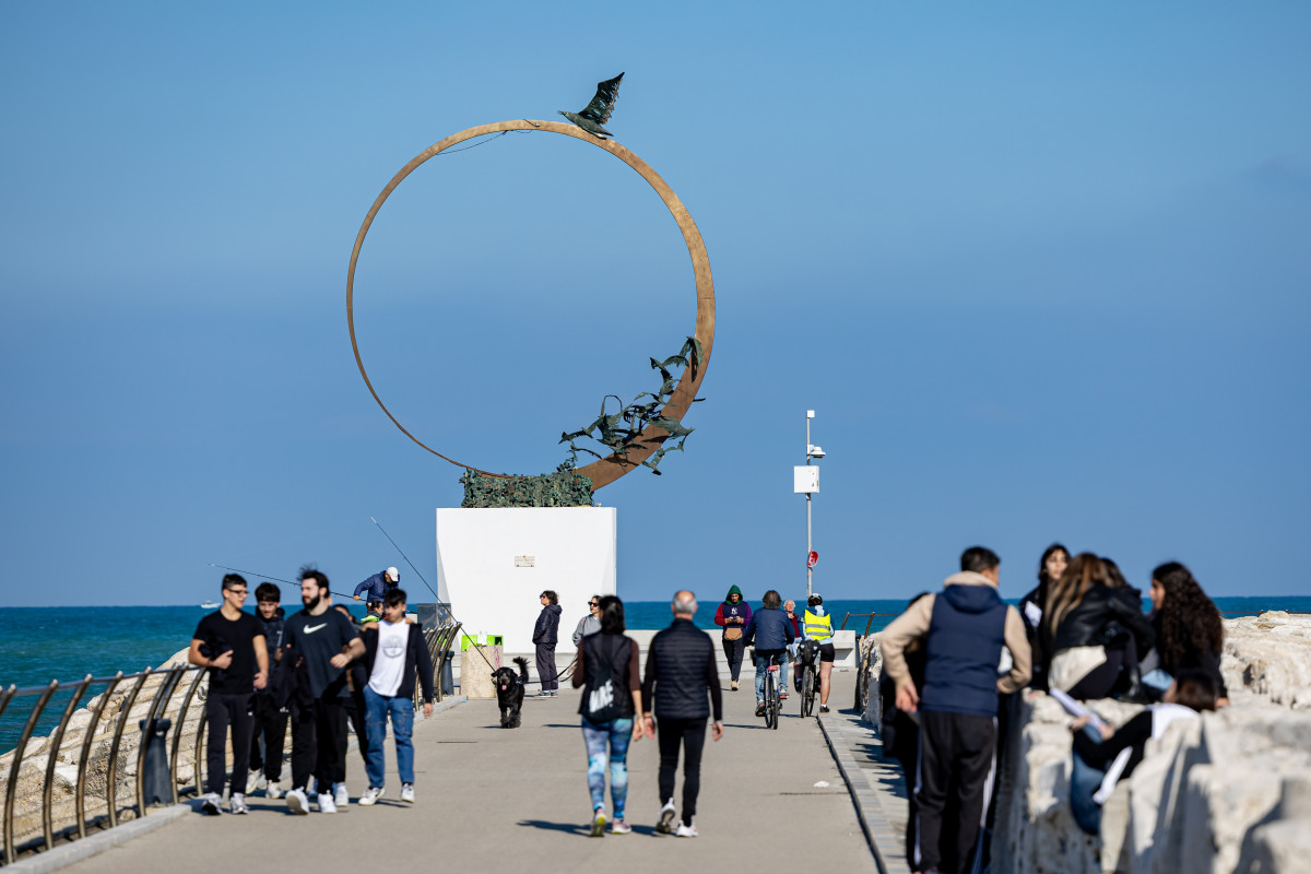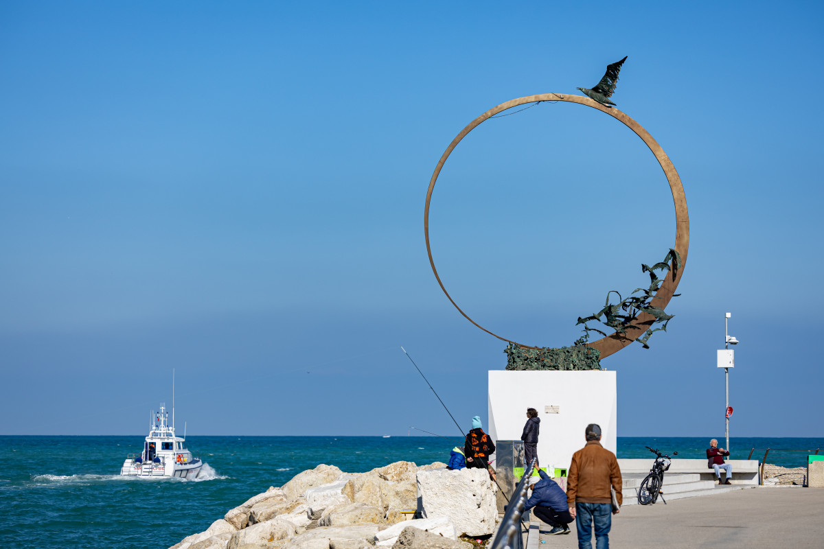 Monumento dell’artista Mario Lupo che si ispira al libro di Bach sulla storia del gabbiano Jonathan Livingston e come la gente di mare che riesce silenziosamente a superare ogni ostacolo.
